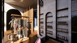 Los materiales seleccionados, como maderas recicladas, estructuras de bambú y revestimientos biodegradables, crean una atmósfera natural y moderna que refleja el compromiso de la marca con el medio ambiente.